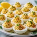 Ina Garten’s classic deviled eggs recipe offers a creamy and tangy filling made from mashed egg yolks, mayonnaise, Dijon mustard, and vinegar. The eggs are perfectly boiled, peeled, and filled to create an elegant appetizer ideal for gatherings, picnics, or holidays.
