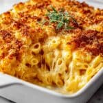 Indulge in the ultimate comfort food with this irresistibly creamy Five Cheese Baked Mac & Cheese. Featuring a rich blend of sharp cheddar, mild cheddar, mozzarella, gouda, and parmesan cheeses, enveloped in a velvety béchamel sauce and topped with buttery panko breadcrumbs for a golden, crispy finish. Perfectly baked to bubbly perfection, this dish is sure to delight cheese lovers and satisfy cravings in every creamy, cheesy bite.