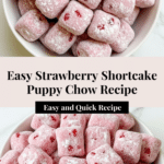 Keywords: strawberry puppy chow, strawberry shortcake snack, white chocolate puppy chow, easy no-bake dessert, Chex mix dessert