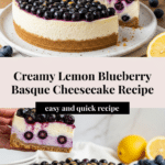 Keywords: Basque cheesecake, lemon blueberry cheesecake, burnt cheesecake, creamy cheesecake, baked cheesecake, berry dessert