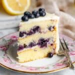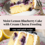 Keywords: lemon blueberry cake, lemon cake, blueberry cake, cream cheese frosting, layer cake, dessert, summer cake, fresh blueberries