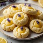 These Lemon Lavender Thumbprint Cookies are buttery shortbread treats with a delicate floral hint and bright lemon flavor. Filled with tangy lemon curd, they make an elegant dessert perfect for spring gatherings or afternoon tea.