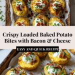 Loaded Baked Potato Bites are the perfect finger food for cozy gatherings or a comforting snack. Crispy on the outside and packed with cheesy, smoky bacon goodness inside, these bites bring ultimate comfort food bliss in every bite.