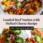 Loaded Nachos with Beef & Cheese is a deliciously satisfying appetizer or snack featuring seasoned ground beef, melted cheddar and Monterey Jack cheese, and a variety of fresh toppings served over crispy tortilla chips. Perfect for game days, parties, or casual gatherings, these nachos combine savory, spicy, and creamy flavors in every bite.