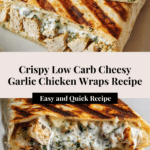 These low carb cheesy garlic chicken wraps are a weeknight hero, delivering crispy, melty comfort without the carb overload. Loaded with tender chicken, savory garlic, and a gooey cheese blend, they come together quickly for a satisfying meal any day of the week.