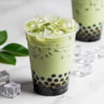 Keywords: Matcha bubble tea, iced matcha tea, tapioca pearls, brown sugar syrup, oat milk bubble tea, vegan bubble tea, homemade boba tea