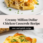 Million Dollar Chicken Casserole is a creamy, cheesy, and satisfying dish that’s perfect for family dinners or potlucks. Made with tender chicken, rich soups, and a crispy cheesy topping, it’s comfort food at its best.