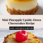 Keywords: Mini Pineapple Upside-Down Cheesecakes, pineapple cheesecake, mini cheesecake recipe, tropical desserts, individual cheesecakes, caramel pineapple dessert
