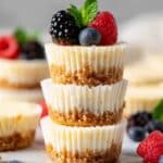 Keywords: mini cheesecake, protein cheesecake, healthy dessert, low fat dessert, Greek yogurt cheesecake, gluten free dessert, easy cheesecake recipe, bite-size cheesecakes