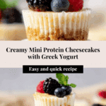 These Mini Protein Cheesecakes are a healthy and delicious treat featuring a crunchy graham cracker crust and a creamy, protein-rich filling made with Greek yogurt and cream cheese. Perfect for a guilt-free dessert or snack, these cheesecakes are easy to make and store well in the refrigerator.