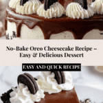 This no-bake Oreo cheesecake is a creamy, indulgent dessert that’s simple to prepare and perfect for any occasion. With a crunchy Oreo crust, a rich cheesecake filling studded with Oreo pieces, and a smooth chocolate ganache topping, it’s sure to impress your guests without requiring oven time.