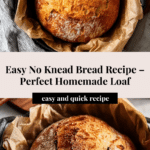 This no-knead bread recipe creates a rustic, crusty loaf with minimal effort. Perfect for home bakers who want fresh, homemade bread without the fuss of traditional kneading. With just a few ingredients and some patience, you’ll enjoy bakery-quality bread right from your oven.