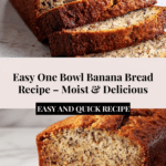 Keywords: banana bread, one bowl banana bread, easy banana bread, quick banana bread, homemade banana bread
