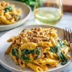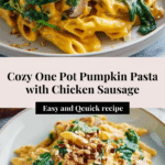 This One Pot Pumpkin Pasta is a cozy, nutritious, and delicious dinner perfect for fall evenings. Whole wheat pasta, chicken sausage, and spinach are enveloped in a creamy, cheesy pumpkin sauce that both kids and adults will love. Easy to make and packed with flavor, it’s a wholesome meal all in one pot.