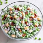Keywords: pea salad, bacon salad, creamy pea salad, summer salad, picnic salad, easy side dish