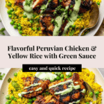 Peruvian Chicken and Rice with Green Sauce is a flavorful, complete meal featuring marinated chicken grilled or baked to juicy perfection. Served over seasoned Peruvian yellow rice and topped with a creamy, zesty green sauce, this dish is sure to impress your family and friends.