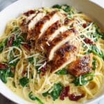 This Pesto Pasta with Chicken is a quick and flavorful dish perfect for busy weeknights. Combining tender shredded chicken, creamy pesto, and fresh cherry tomatoes, it’s both satisfying and easy to prepare in just 25 minutes.