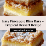Pineapple Bliss Bars are a delightful treat that combine a buttery crust with a sweet, tangy pineapple filling. These bars are perfect for a tropical-inspired dessert or a sweet snack any time of year.