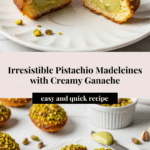 Keywords: pistachio madeleines, pistachio ganache, French pastry, tea cakes, white chocolate ganache, nutty desserts, elegant desserts