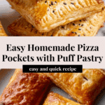 These pizza pockets are a fun and easy twist on classic pizza, wrapped in flaky puff pastry. Perfect for a quick snack or party appetizer, they combine your favorite toppings with gooey cheese inside a crispy, golden crust.