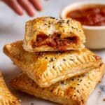 These delicious Pizza Pockets are made with flaky puff pastry filled with classic pizza sauce, mozzarella cheese, and your favorite toppings. Perfectly golden and crispy, they make a great snack or party appetizer ready in just 45 minutes.