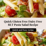 This quick gluten-free and dairy-free BLT pasta salad is a delicious twist on the classic sandwich. Combining crispy bacon, fresh lettuce, and juicy tomatoes with firm gluten-free pasta and a light mayo-based dressing, it’s perfect for summer gatherings or easy weeknight meals.