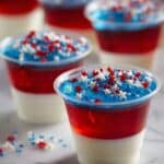 Celebrate with these festive Red White & Blue American Flag Jello Shots that are perfect for patriotic parties. Layered with vibrant colors and a creamy middle, they’re as fun to make as they are to enjoy!