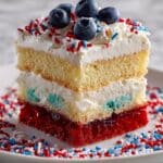 This Red White and Blue Poke Cake is a festive and refreshing dessert perfect for patriotic celebrations or any summer gathering. Layers of moist white cake soaked with sweetened condensed milk and colorful fruit make it both eye-catching and delicious.
