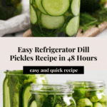 These easy Refrigerator Dill Pickles are a quick and simple way to enjoy fresh, crisp pickles without any canning required. Using fresh dill, garlic, and a tangy vinegar brine, these pickles develop a bright, zesty flavor after just 24-48 hours in the fridge. Perfect for a crunchy snack or condiment, they stay fresh for weeks and can be customized by slicing cucumbers into spears, chips, or keeping mini cucumbers whole.