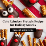 Keywords: reindeer pretzels, holiday treats, Christmas snacks, chocolate dipped pretzels, festive treats, easy holiday recipes
