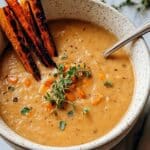 Keywords: Roasted Sweet Potato Soup, Italian Soup, Creamy Sweet Potato Soup, Vegetarian Soup, Cozy Fall Soup, Coconut Milk Soup