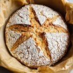 - Shape and Second Rise: Place the dough onto a generously floured piece of parchment paper or cutting board. Gently shape it into a smooth ball. Sprinkle the top with more flour, cover it with a large bowl acting as a dome, and allow it to rise for another 30 minutes.