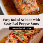 Salmon with Red Pepper Sauce is a vibrant and flavorful dish perfect for a quick weeknight dinner. This recipe combines tender, baked salmon with a zesty red pepper topping that adds both color and deliciousness.