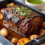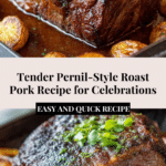 This Pernil-Style Roast Pork recipe features a tender, juicy pork shoulder marinated in a flavorful mixture of garlic, herbs, citrus, and spices, then slow-roasted to perfection with a crispy skin. Ideal for celebratory feasts, this dish combines Latin-inspired seasonings with a roasting method that ensures succulent meat, complemented by caramelized onions and savory pan juices.