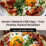 This Savory Oatmeal with Eggs recipe offers a warm and comforting breakfast bowl that combines creamy oats cooked in vegetable broth with perfectly cooked eggs and customizable savory toppings like fresh herbs, cheese, sautéed vegetables, and crispy bacon. Ready in just 15 minutes, it’s a nutritious and satisfying start to your day.