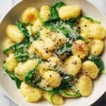 - Serve: Plate the gnocchi and garnish with the remaining grated hard cheese and freshly ground black pepper to taste. Enjoy warm.