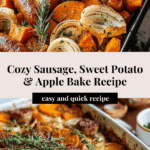 Keywords: sausage casserole, sweet potato bake, apple sausage dish, savory sweet bake, autumn casserole recipe