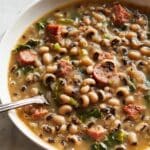 PrintSouthern Black-Eyed Peas with Bacon, Sausage, and Collard Greens Recipe