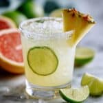 - Serve: Strain the mixture into the salt-rimmed glass filled with fresh ice. Garnish with slices of grapefruit, lime, or a wedge of pineapple for an attractive presentation. Serve immediately to enjoy the cocktail at its best flavor and temperature.