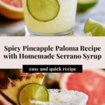 Keywords: Spicy Pineapple Paloma, Paloma cocktail, serrano pepper syrup, tequila cocktail, spicy drink, summer cocktail, refreshing drinks