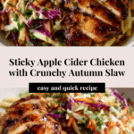Sticky Apple Cider Chicken with Crisp Autumn Slaw is a perfect fall dish that combines juicy, caramelized chicken thighs with a sweet and tangy apple cider glaze. Paired with a refreshing slaw packed with seasonal veggies and fresh herbs, it offers a delightful balance of warm flavors and crisp textures for cozy dinners or family meals.