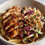 Sticky Apple Cider Chicken with Crisp Autumn Slaw is a perfect fall dish that combines juicy, caramelized chicken thighs with a sweet and tangy apple cider glaze. Paired with a refreshing slaw packed with seasonal veggies and fresh herbs, it offers a delightful balance of warm flavors and crisp textures for cozy dinners or family meals.