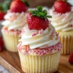 These Strawberry Crunch Cupcakes are a delightful treat combining fluffy white cake, creamy frosting, and a sweet, crunchy strawberry topping. Their fresh strawberry garnish and golden Oreo crumble add a burst of flavor and texture that will impress at any gathering.