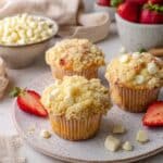 PrintStrawberry White Chocolate Muffins with Buttery Streusel Crunch Recipe