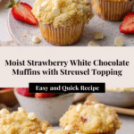 These strawberry white chocolate muffins are a delightful bakery-style treat, combining juicy fresh strawberries with creamy white chocolate. Topped with a buttery streusel crunch, they are perfectly moist and fluffy—ideal for spring brunch or a sweet snack any time of day.