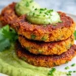 These sweet potato patties with lentils are a flavorful and wholesome dish perfect for any meal. They’re beautifully glazed with a creamy avocado cilantro sauce and a tangy mango chutney, creating a delightful balance of tastes and textures.