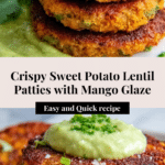 These sweet potato patties with lentils are a flavorful and nutritious vegetarian dish, featuring tender mashed sweet potatoes and red lentils blended with aromatic spices, then pan-fried to golden perfection. Served with a creamy avocado cilantro sauce and a tangy mango chutney glaze, this recipe is perfect for a wholesome lunch or dinner.