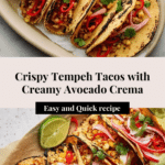 Keywords: tempeh tacos, vegan tacos, plant-based tacos, avocado crema, crispy tempeh, pickled vegetables, Mexican-inspired, gluten free, vegan dinner