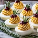 Keywords: Thanksgiving deviled eggs, holiday appetizers, cranberry deviled eggs, autumn recipes, deviled eggs with cranberry sauce, festive finger foods