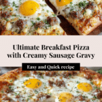 This breakfast pizza with sausage gravy is a hearty and delicious way to start your day. Combining a crispy crust with creamy sausage gravy, melted cheese, and perfectly cooked eggs, it brings all your favorite breakfast flavors together in one dish.